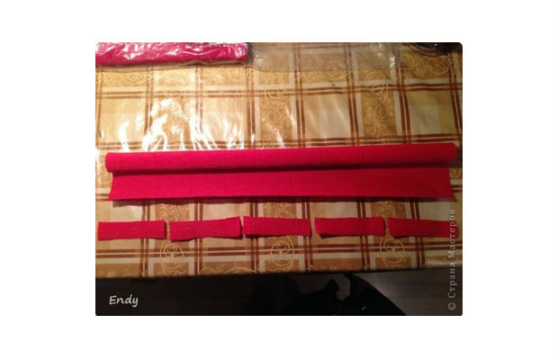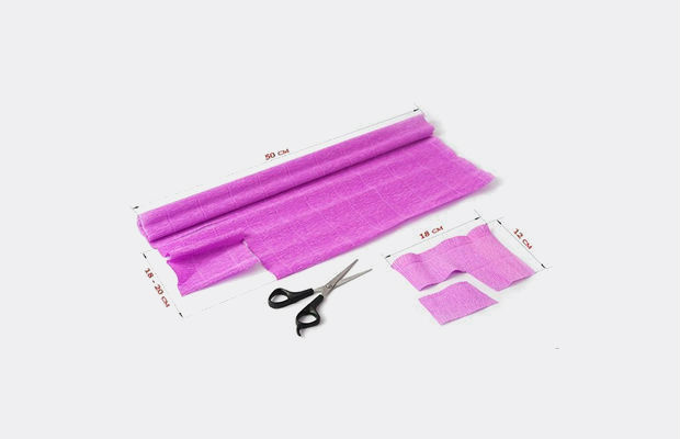 Corte o papel crepom, conforme o modelo da imagem acima, seguindo as medidas informadas.