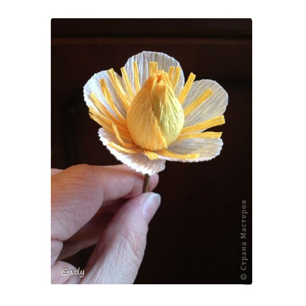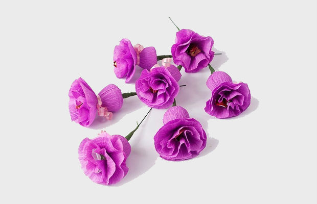 Em seguida, decore o seu entorno com outras pétalas feitas de papel crepom.