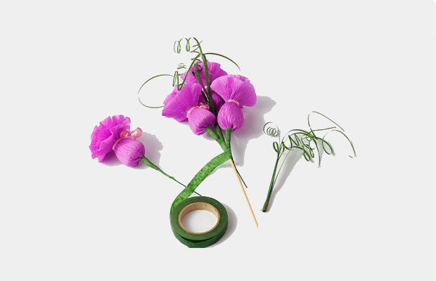 Depois de prontas as rosas, você deverá uni-las em um espetinho de madeira.