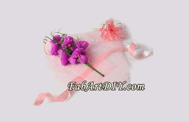 Arranjo de flores com papel decorado com crepom