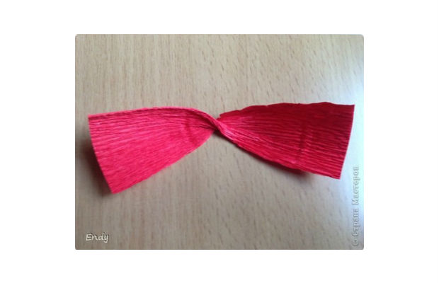 Em seguida, dê uma torcida nesse papel, como se fosse um laço.