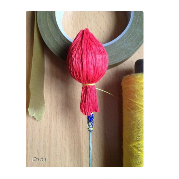 Novamente, com um barbante, forre esse bombom com um papel crepom.